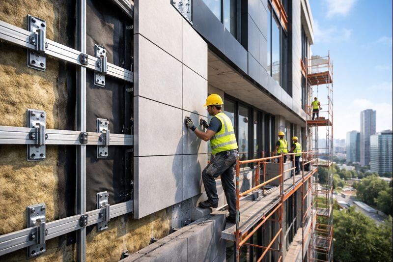 | НФС под композитные панели | Эффектный внешний вид, удобная обработка, сложные формы | Выбор схемы навески, жесткость кассет, правильные узлы | Коммерческие фасады, входные группы, реконструкция |